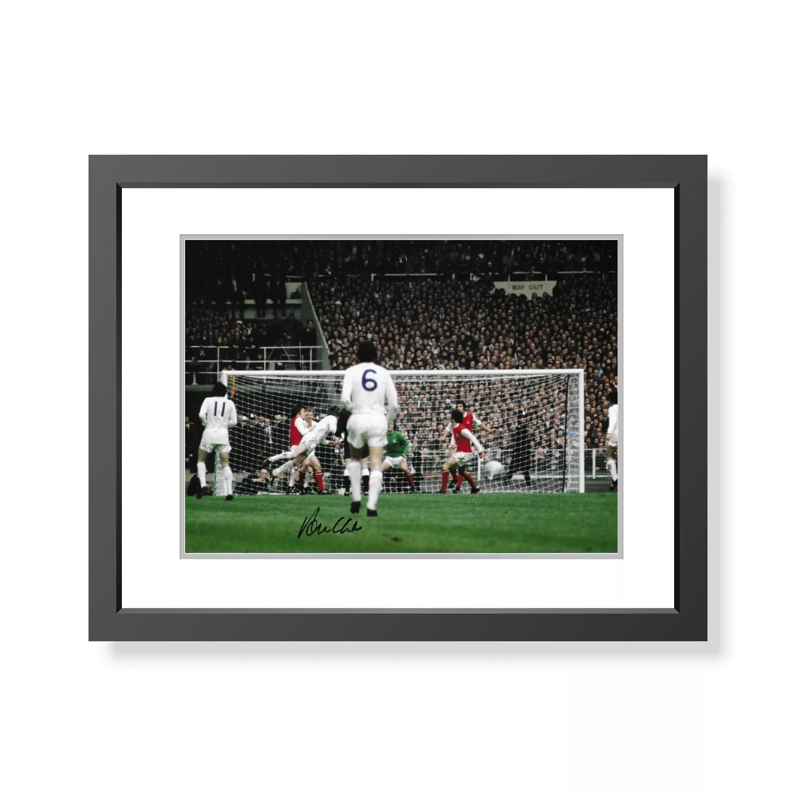 It shows Allan scoring the winning goal against Arsenal during the 1972 FA Cup final and has been mounted & framed to an overall size of 16x12 inches. This frame is a handmade wooden frame with a smooth matt finish. All items are framed using Perspex to minimise damage in transit and come complete with hanging kits.