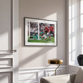 It has been mounted & framed to an overall size of 14x11 inches. This frame is a handmade wooden frame with a smooth matt finish. All items are framed using Perspex to minimise damage in transit and come complete with hanging kits.