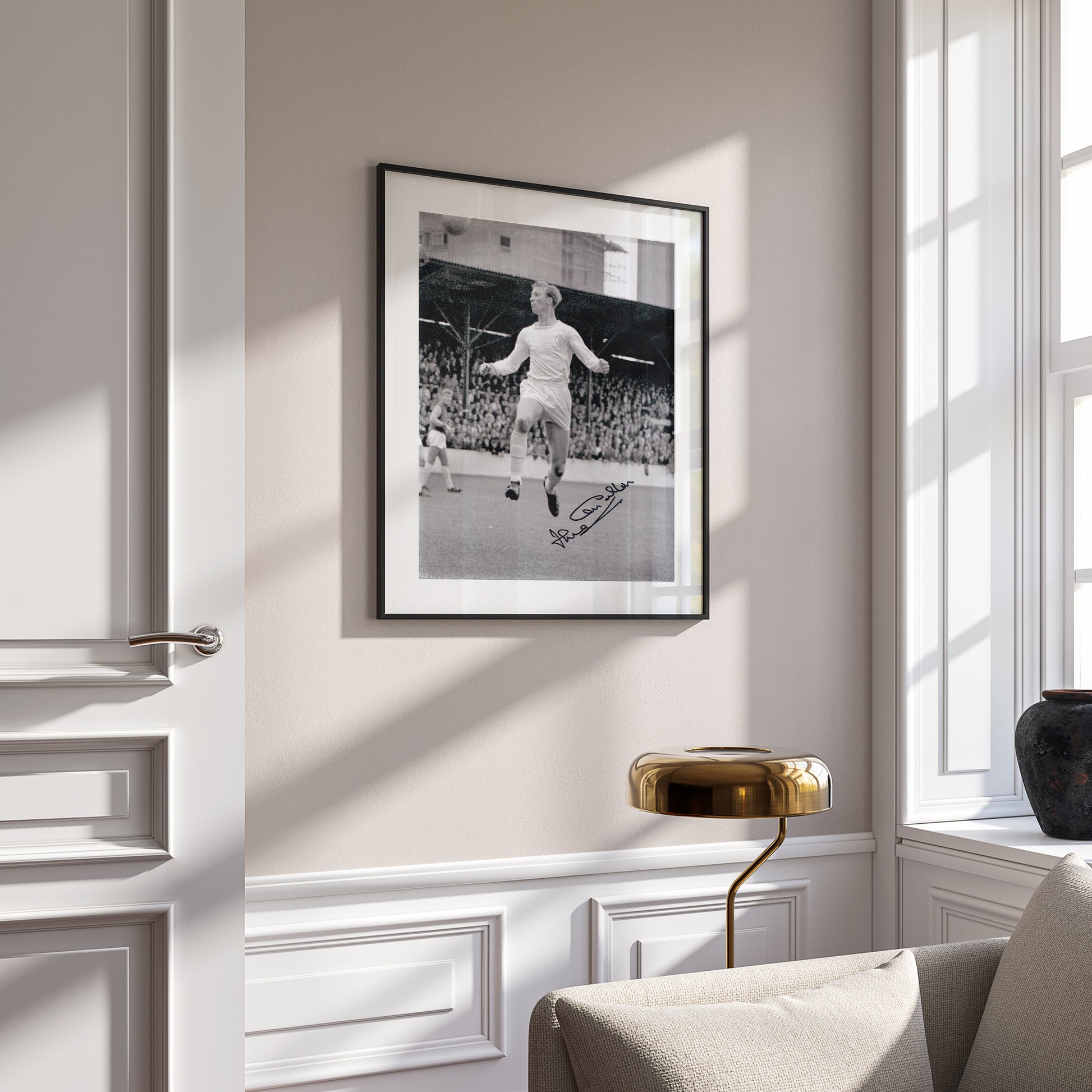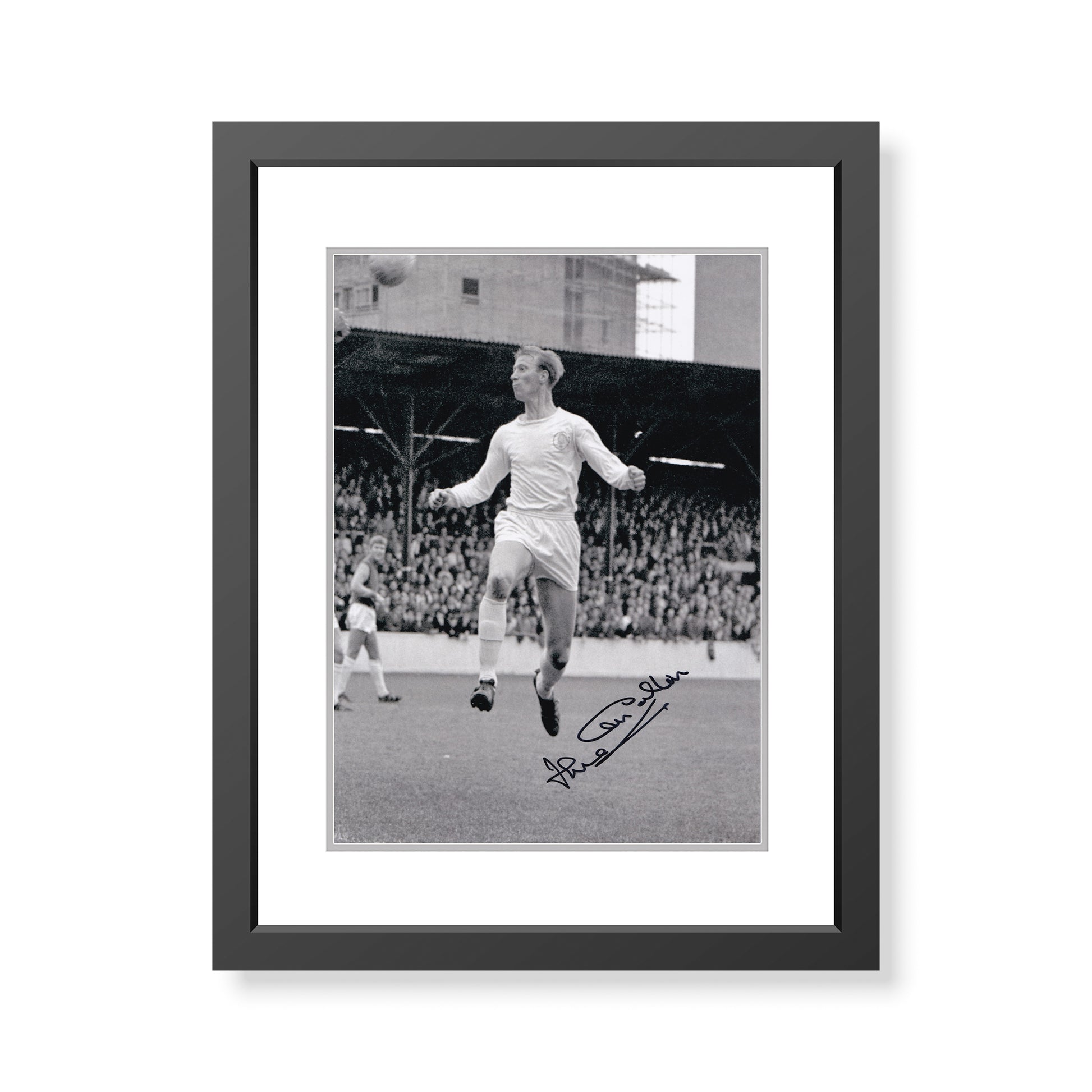 It shows Jack in action for Leeds during the 1960s and has been mounted & framed to an overall size of 14x11 inches. This frame is a handmade wooden frame with a smooth matt finish. All items are framed using Perspex to minimise damage in transit and come complete with hanging kits.