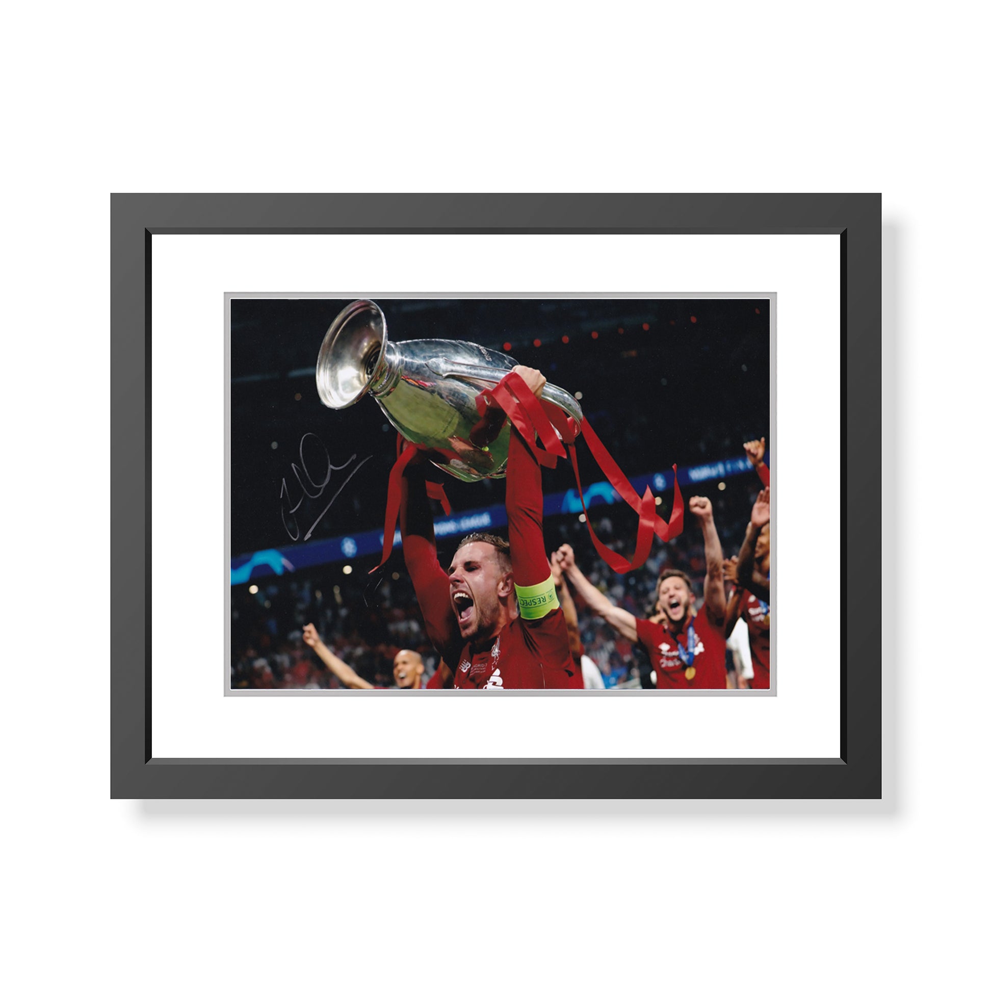 It shows Jordan lifting the Champions League trophy and has been mounted & framed to an overall size of 16x12 inches. This frame is a handmade wooden frame with a smooth matt finish. All items are framed using Perspex to minimise damage in transit and come complete with hanging kits.