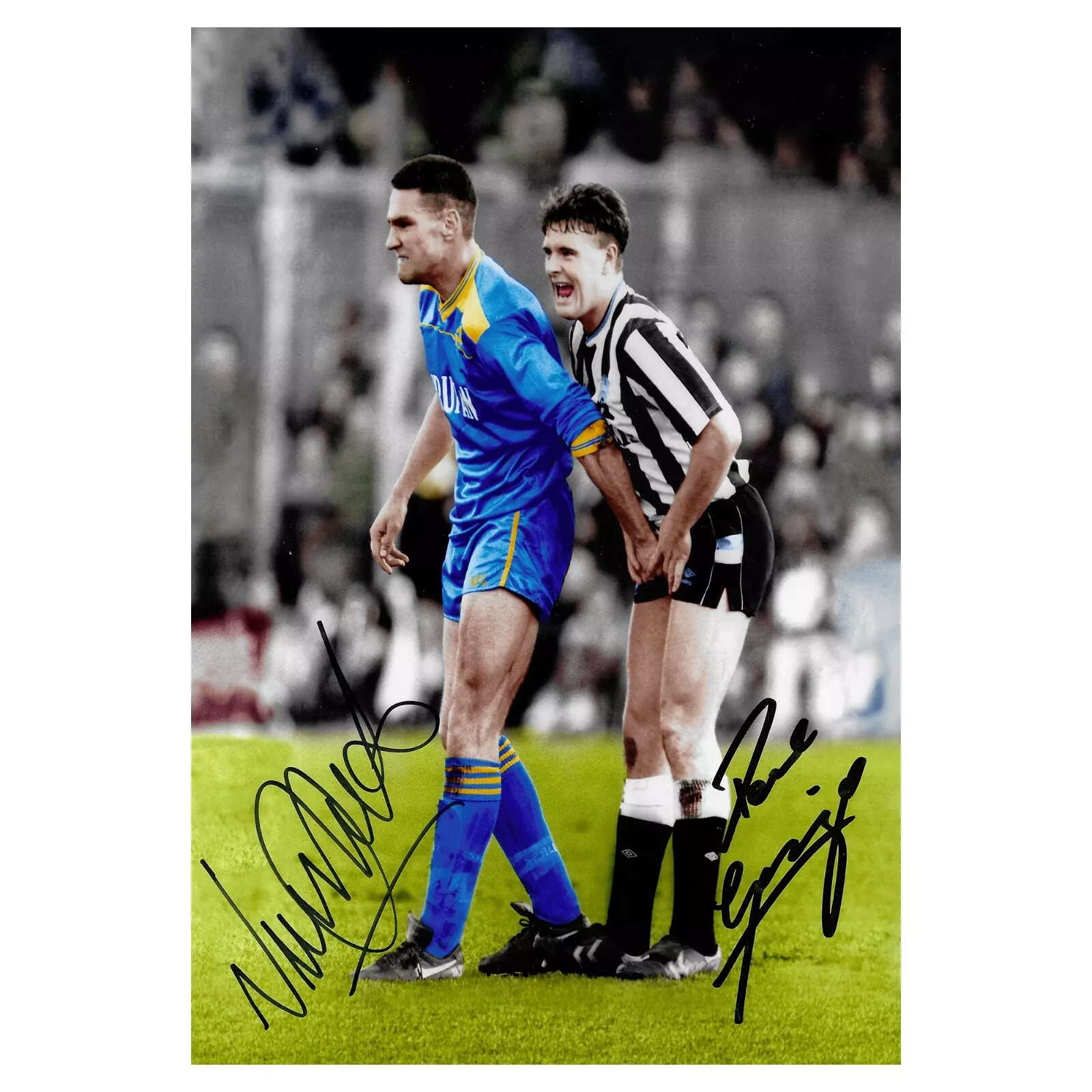 Paul Gascoigne Gazza Vinnie Jones Signed Ball Squeeze Photo Gazza Autograph COA